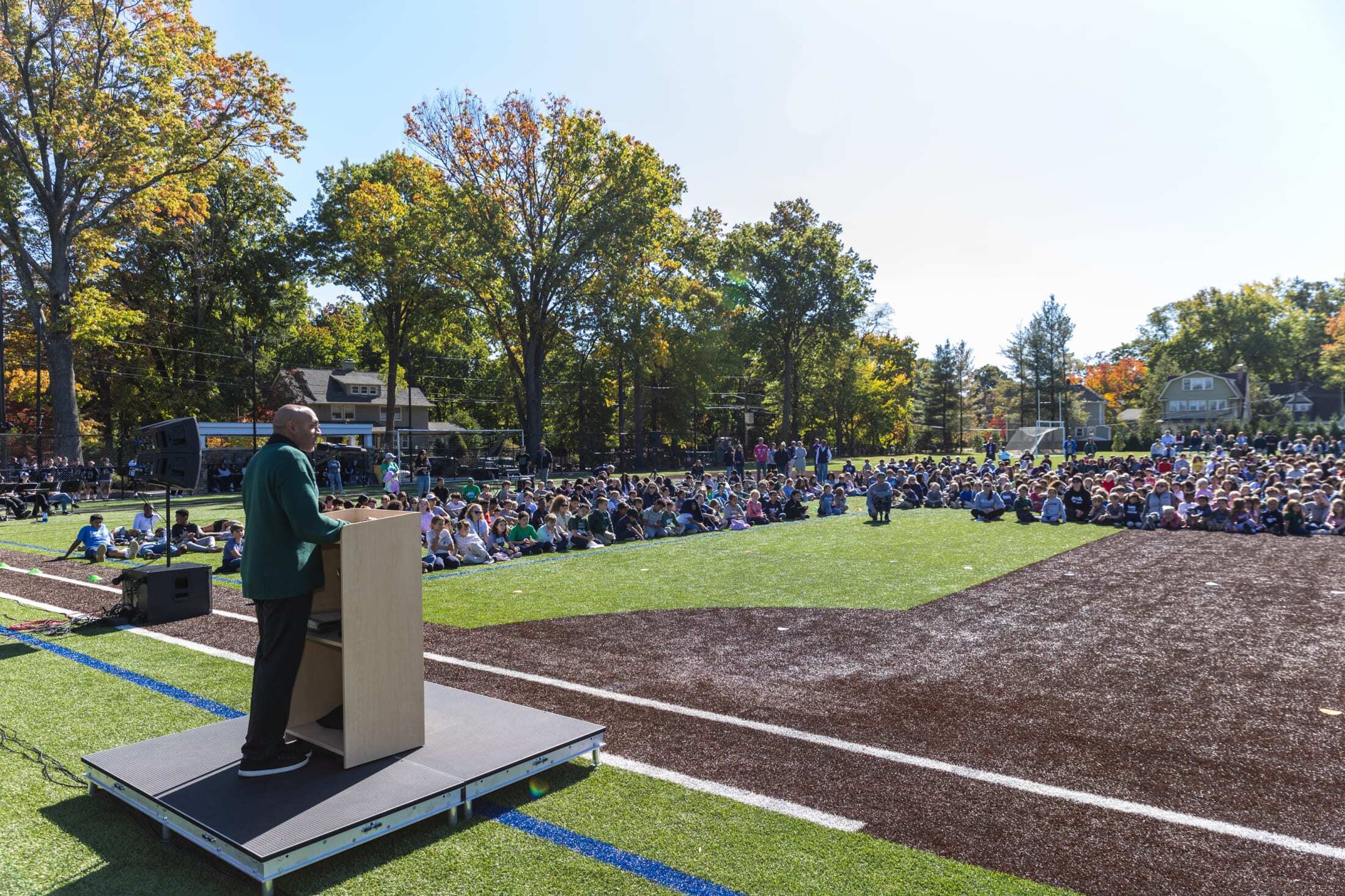 With true Cougar pride, MKA hosted its All-School Gathering on Friday, October 18 – the only event of the year when all three campuses come together on one campus. Early in the day, each campus joined together to view a special 50 Years of MKA video which set the tone for this joyous occasion. Set against the backdrop of a beautiful sunny day, for the first time ever the Gathering was held outside on the Middle School Fields. With excitement and energy, students from kindergarten to twelfth grade gathered on the turf along with faculty and staff. This annual event never disappoints, featuring lively performances, and recognition of achievement.