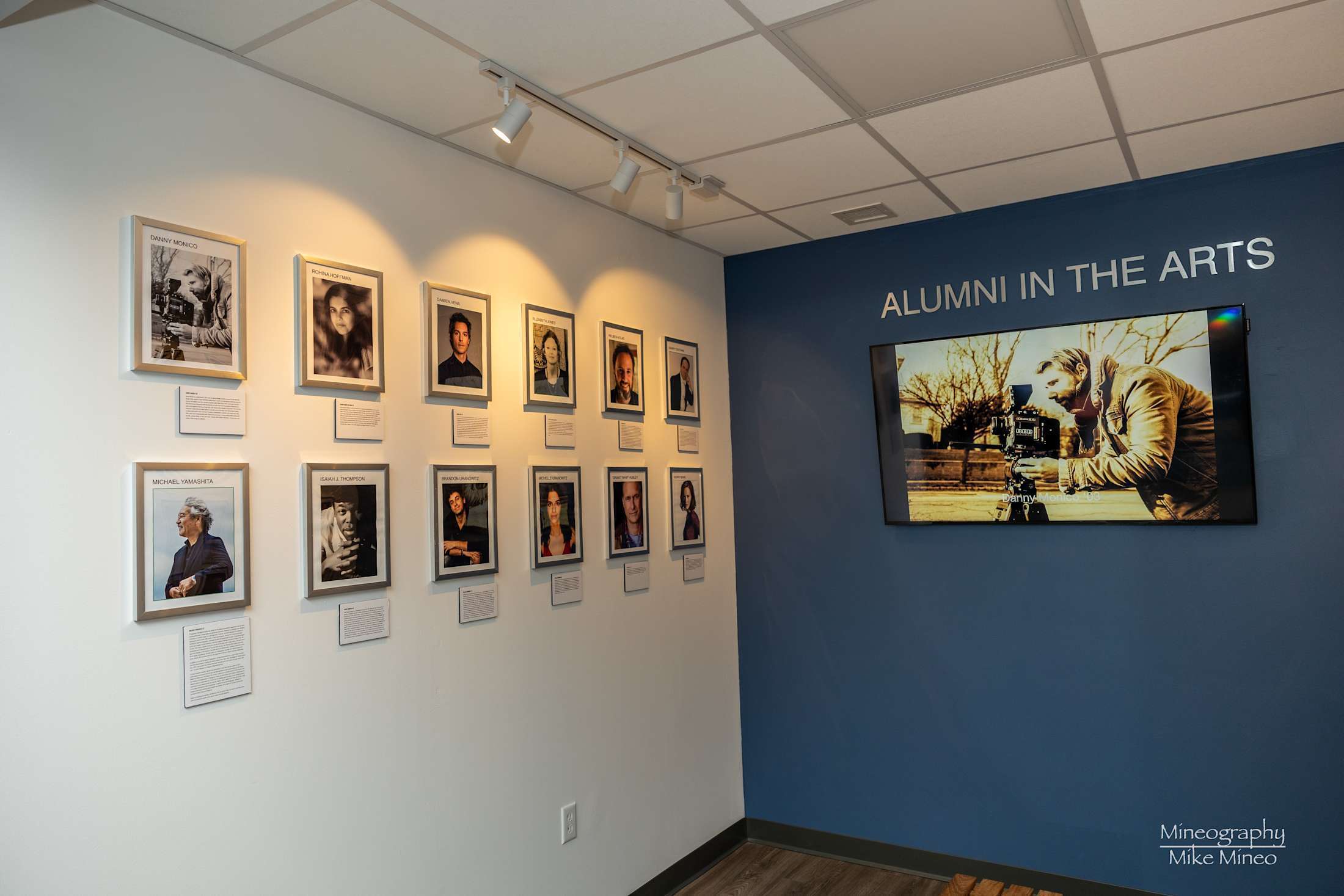 On opening night the official unveiling of the school’s Alumni in the Arts Alcove took place in the Weiss Gallery. Several years ago, Upper School Fine and Performing Arts teachers Nicole Hoppe and the late Tony Cuneo were discussing how many successful artists have graduated from MKA. Tony had the great idea to renovate the alcove in the Arts Wing to showcase all of our extraordinary alumni in the Arts and the amazing art work they are doing all over the world. We were thrilled to unveil this exciting initiative celebrating: Elizabeth Glaeser-Jones ’53, Michael J. Pollard ’57, Michael Yamashita ’67, Polly Smith ’67, Frank LaRocca ’69, Grant “Whip” Hubley ’75, Barry Centanni ’77, Michael Platt ’77, Stacy Cochran ’77, Gwendolyn Boevé Jones MKA ’79, Rohina Gandhi-Hoffman ’86, Negar Ahkami ’88, George Hrab Jr. ’89, Doreen Oliver ’92, Damien Vena ’93, Jeremy Selenfriend ’96, Ruben Atlas ’97, Kristen Connolly ’98, Dan Blake ’99, Lauren Hooper-Rogers ’00, Kerry Bishe ’02, Danny Monico ’03, Will Connolly ’03, Brandon Uranowitz ’04, Jake Weary ’08, Michelle Uranowitz ’08, Melissa Schlobohm ’08, Nadia Brown ’12, Isaiah Thompson ’15 , and Casey Garvin.